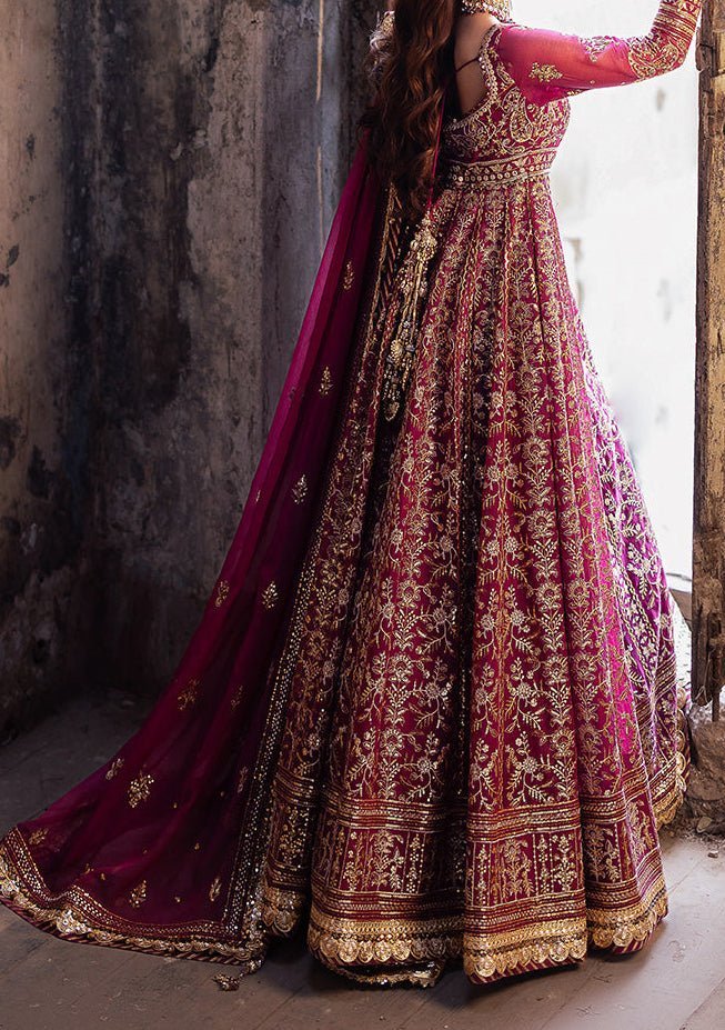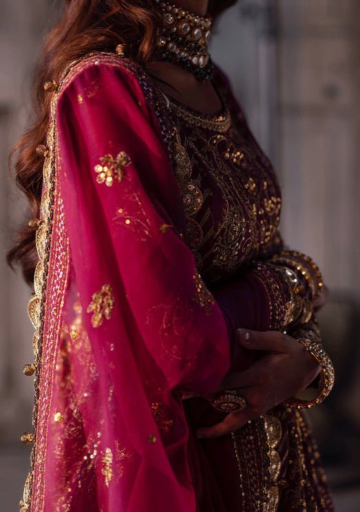 Introducing our New collection 'BEKHUDI' by Asim Jofa designed to make you look and feel your best. Drenched in the vibrant hue of magenta, this Peshwas radiates a bold and regal presence.