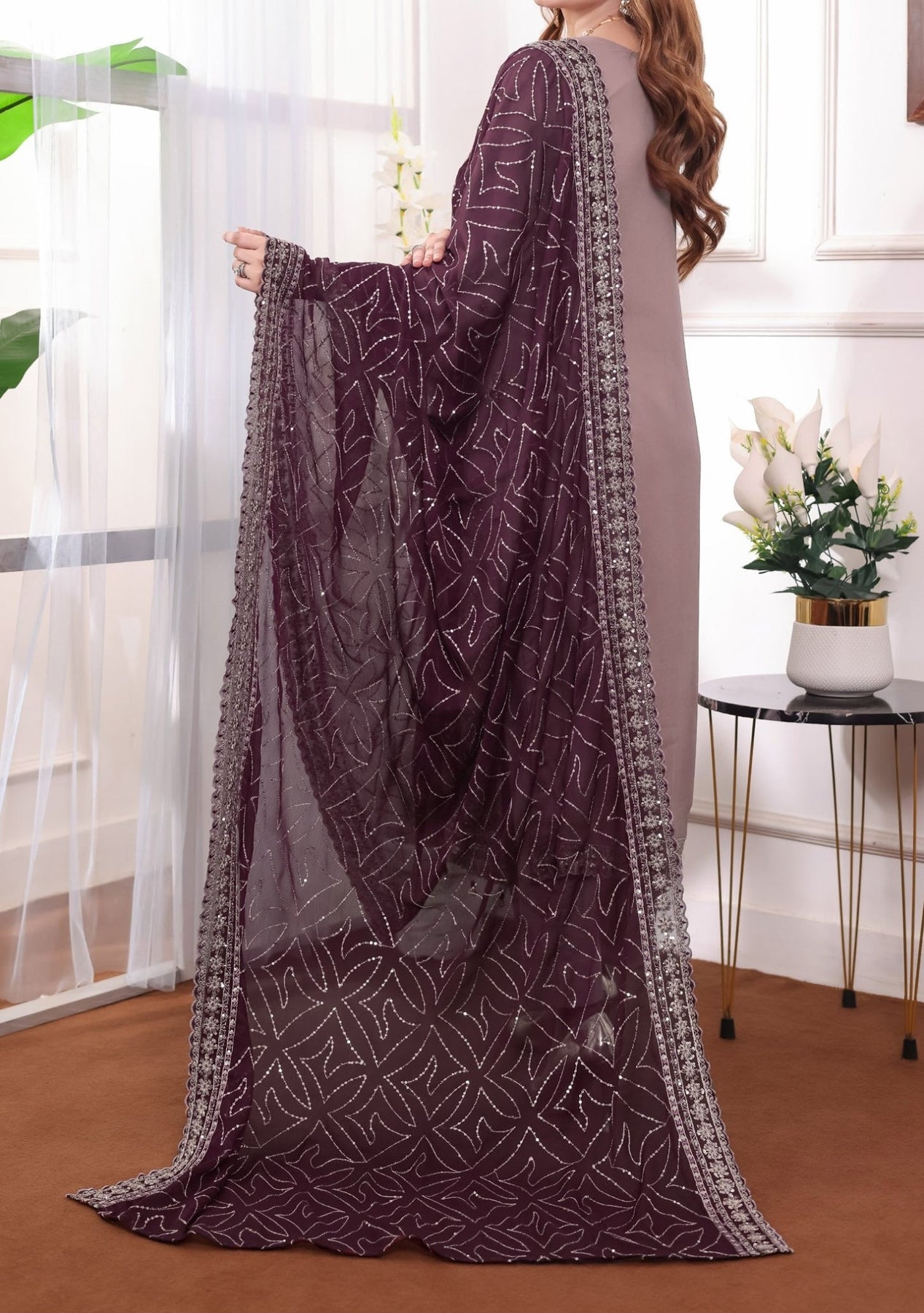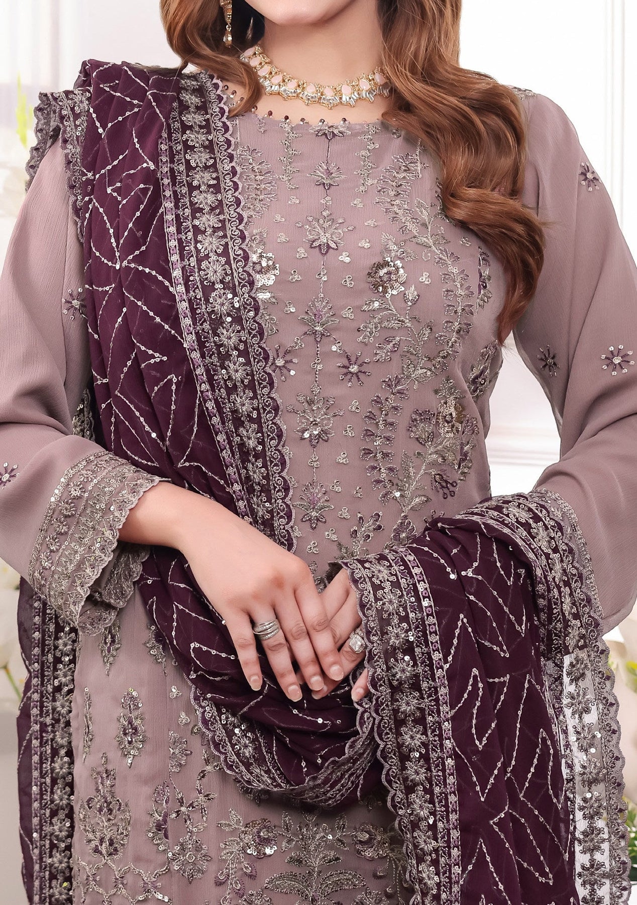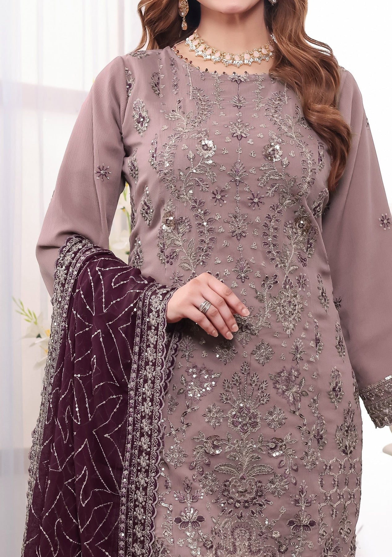 • Embroidered Chiffon Dupatta With Border Work.
