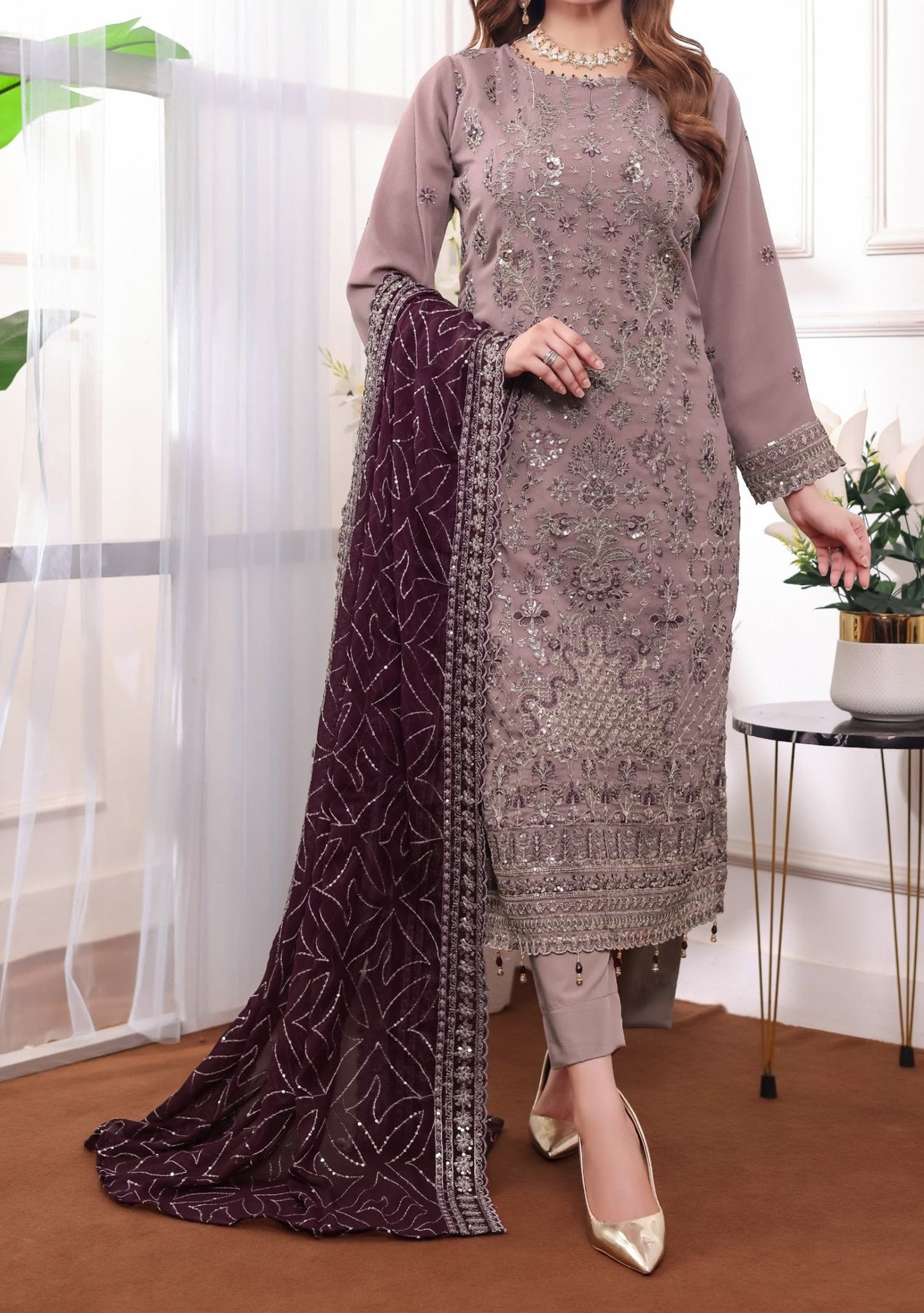 Includes: Ready-Made Kameez, Trouser, Dupatta.