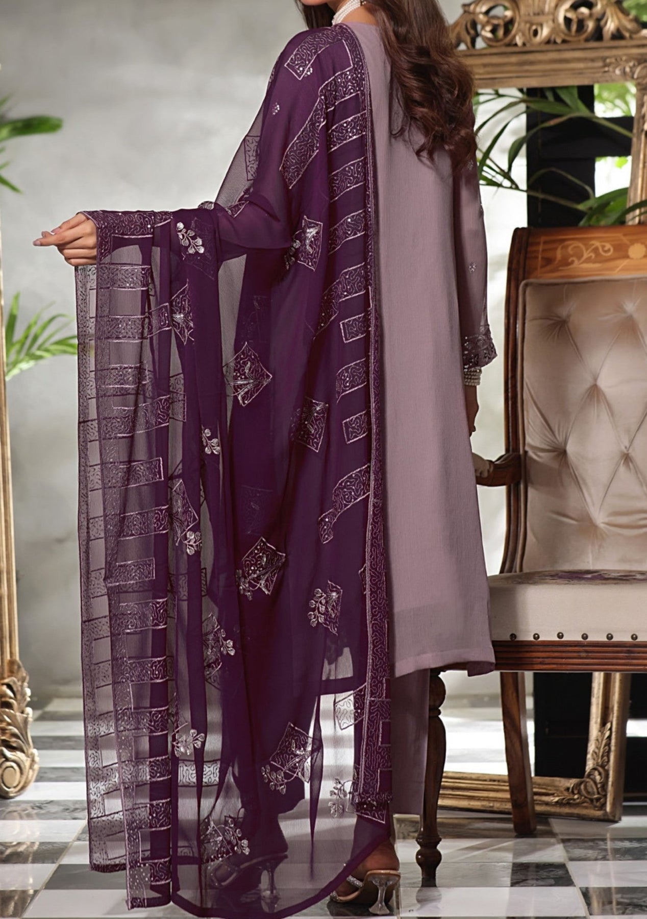 - Chiffon Embroidered Handwork Kameez.