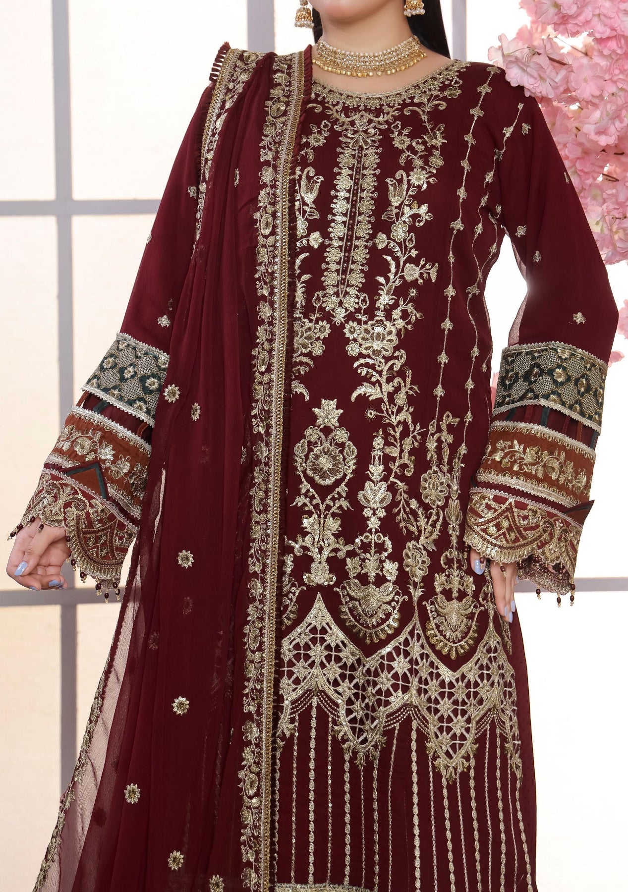 • Chiffon Embroidered Handwork Kameez.