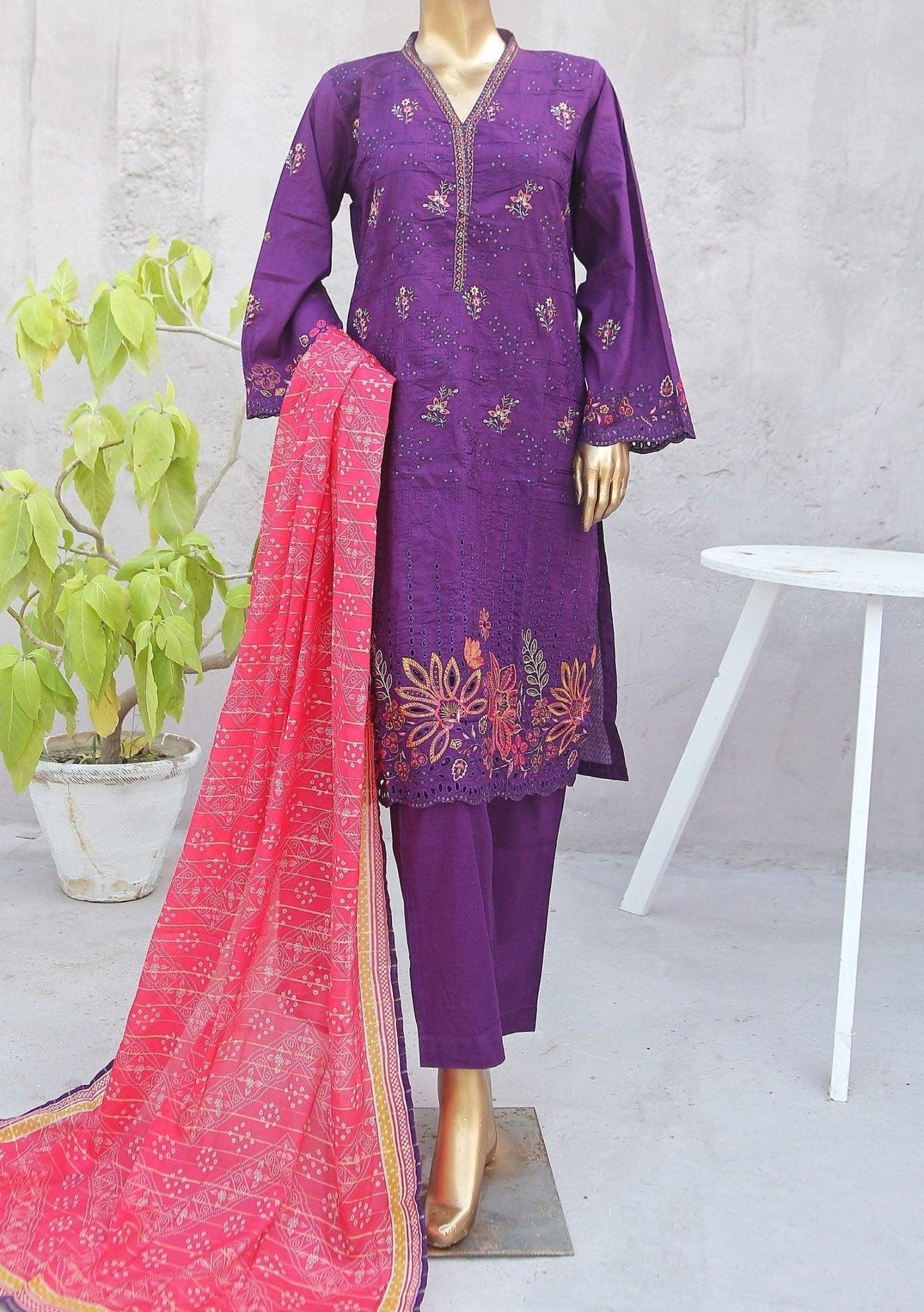 Includes: Ready-Made Kameez, Trouser, Dupatta.