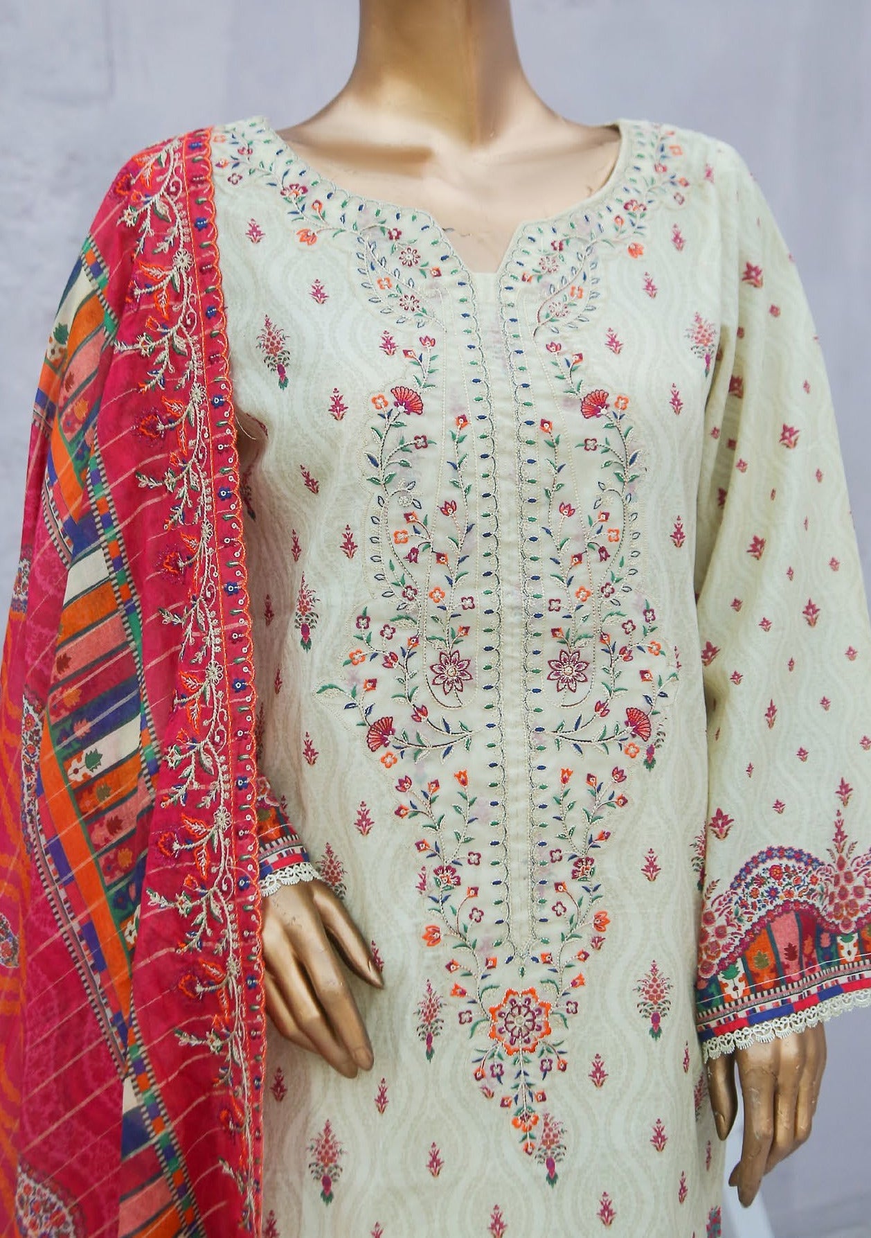Includes: Ready-Made Kameez, Trouser, Dupatta.