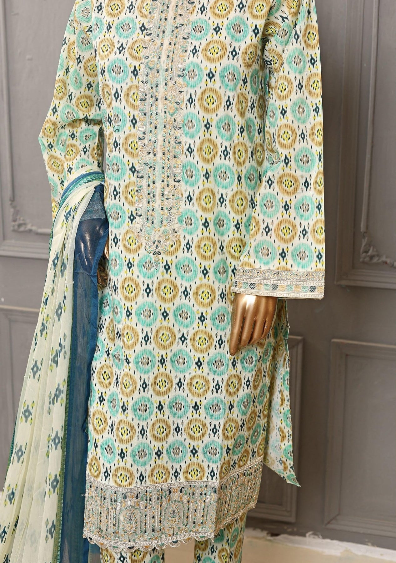 Includes: Ready-Made Kameez, Trouser, Dupatta.