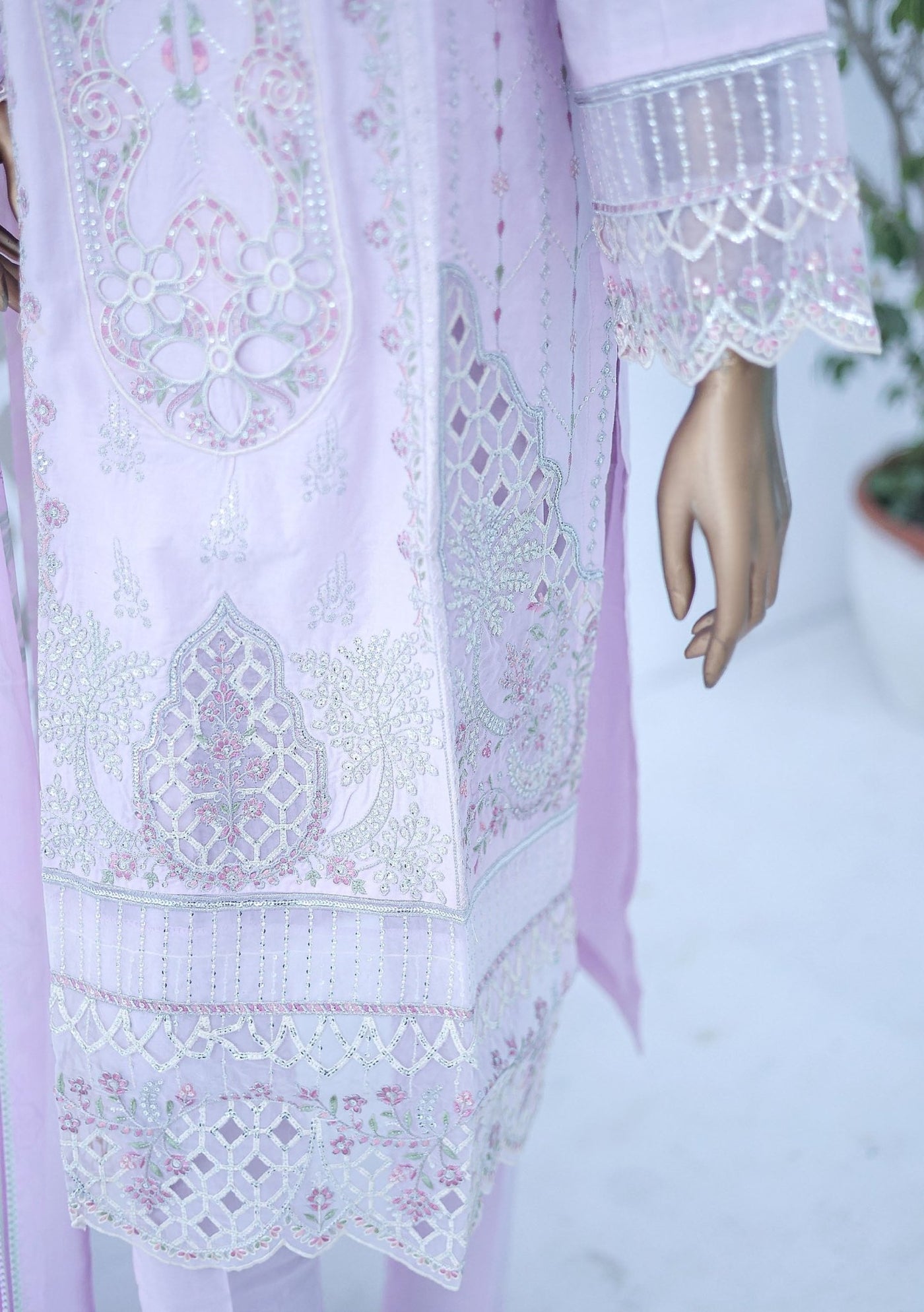 Includes: Ready-Made Kameez, Trouser, Dupatta.