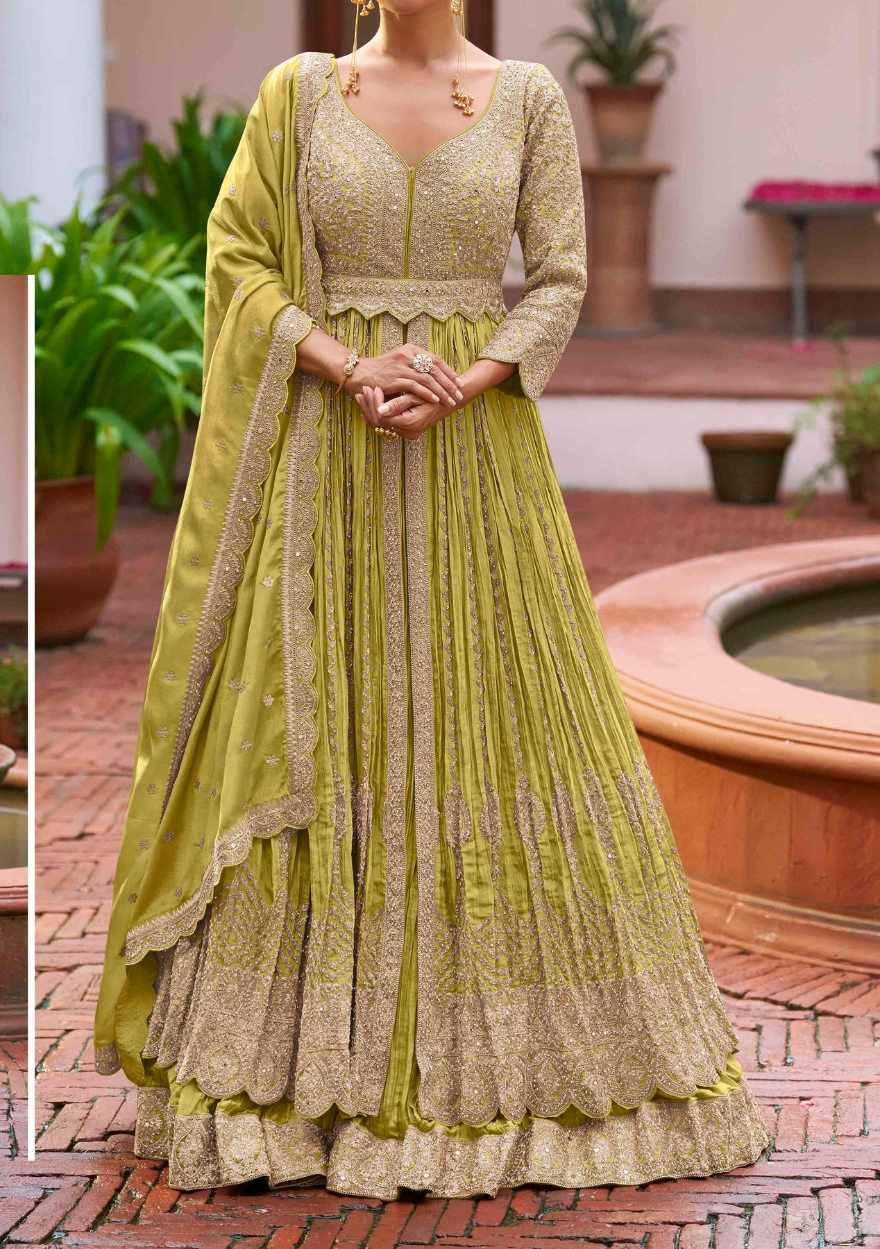 Featuring This Gorgeous party wear Anarkali Suit from the Brand Gulkayra in Real Chinon paired with a Lehenga (Skirt), and dupatta.