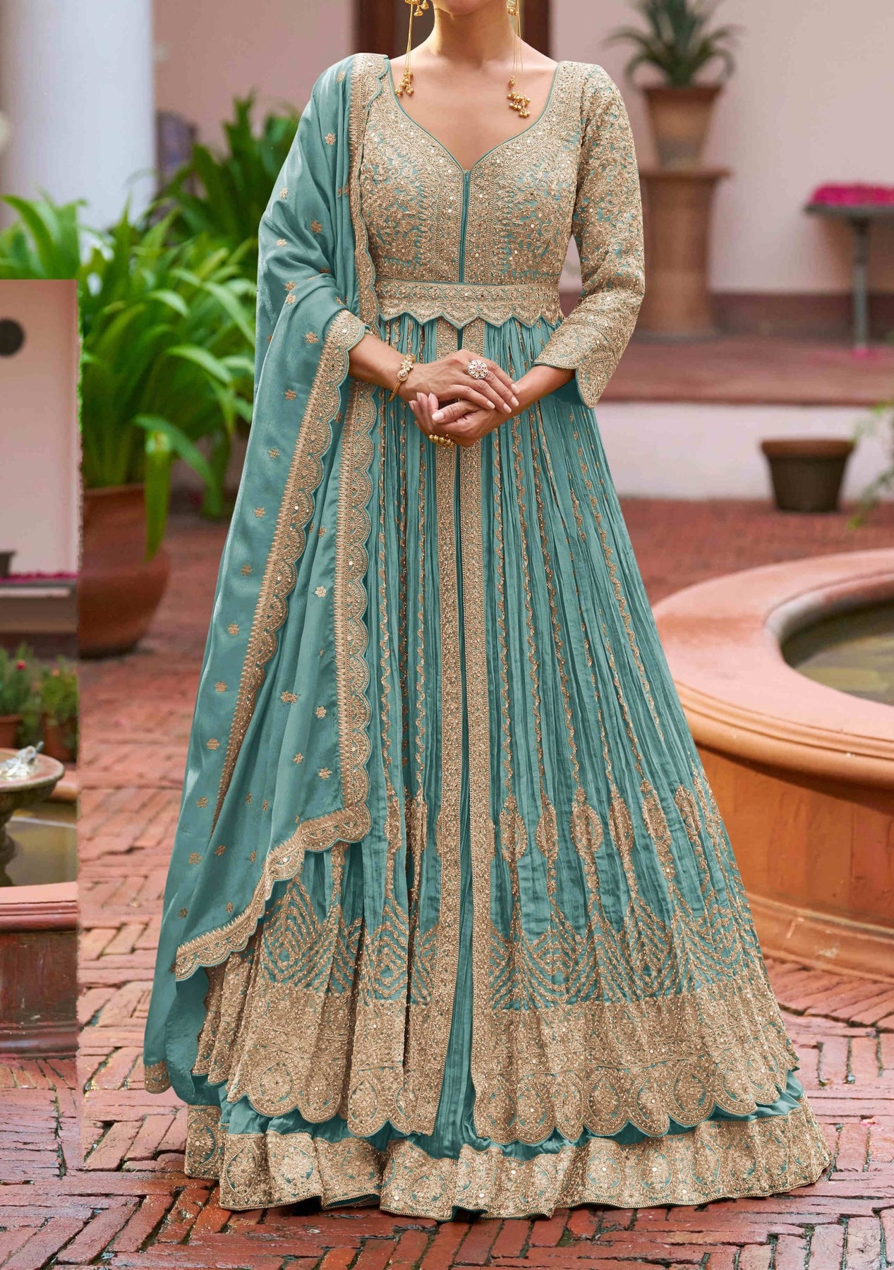 Includes: Anarkali, Lehenga (Skirt), Dupatta.