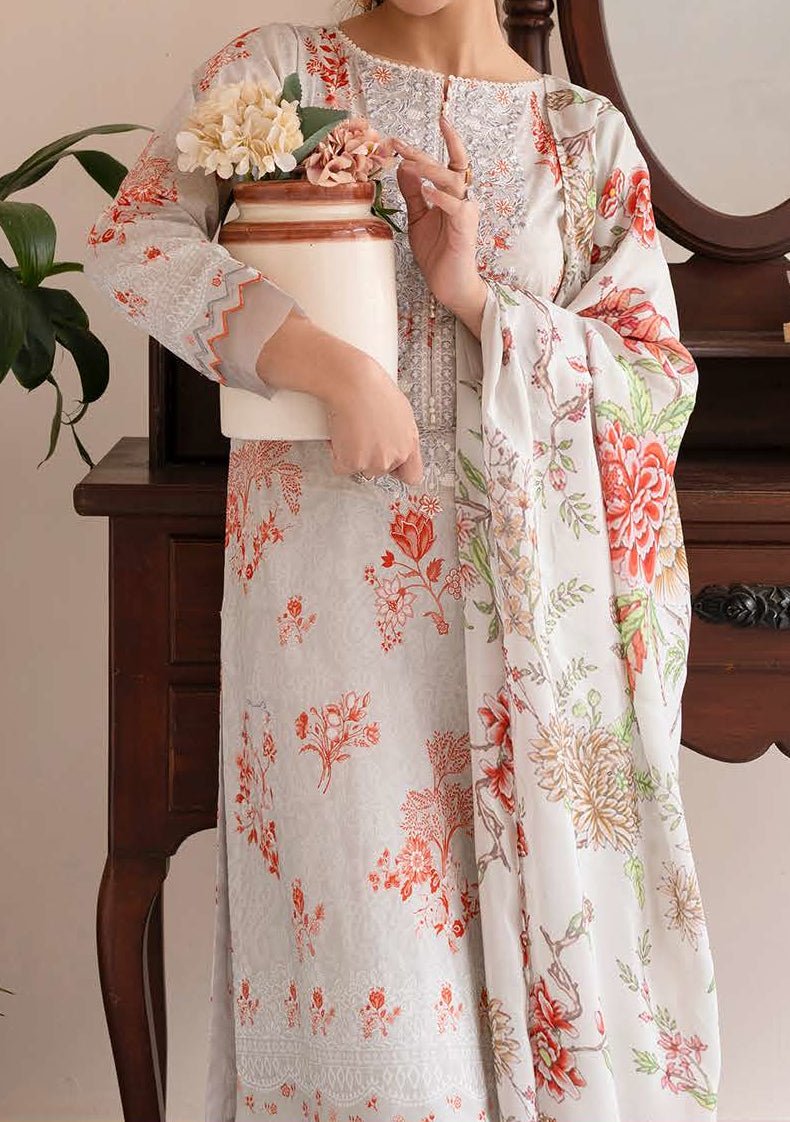 Introducing our New Ready Made Lawn collection 'Morja' by Gulljee designed to make you look and feel your best With This All New Ready Made Luxury Digital Printed Lawn Dress with Dyed Cambric Cotton Trouser and a Silk Dupatta.