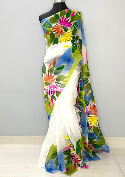Hand Painted Mixed Cotton Saree - db26038
