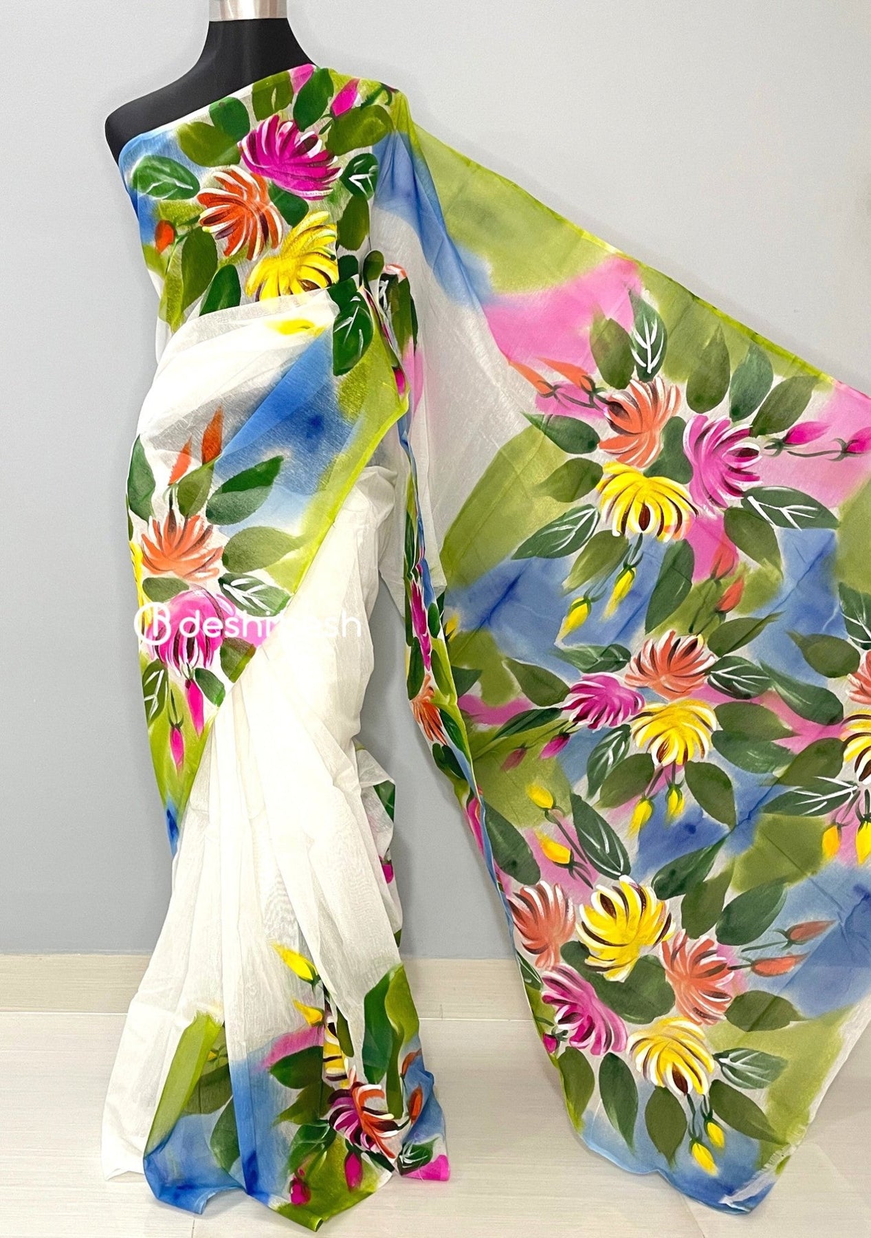 Work: All Over Floral Hand Painted Work.