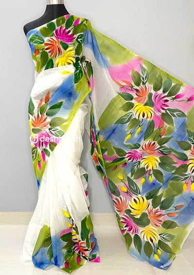 Hand Painted Mixed Cotton Saree