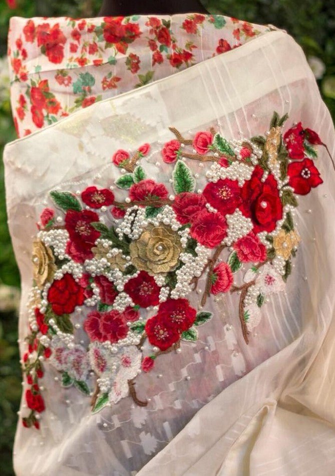 Work: Hand Couture Carnation and Pearl Work.