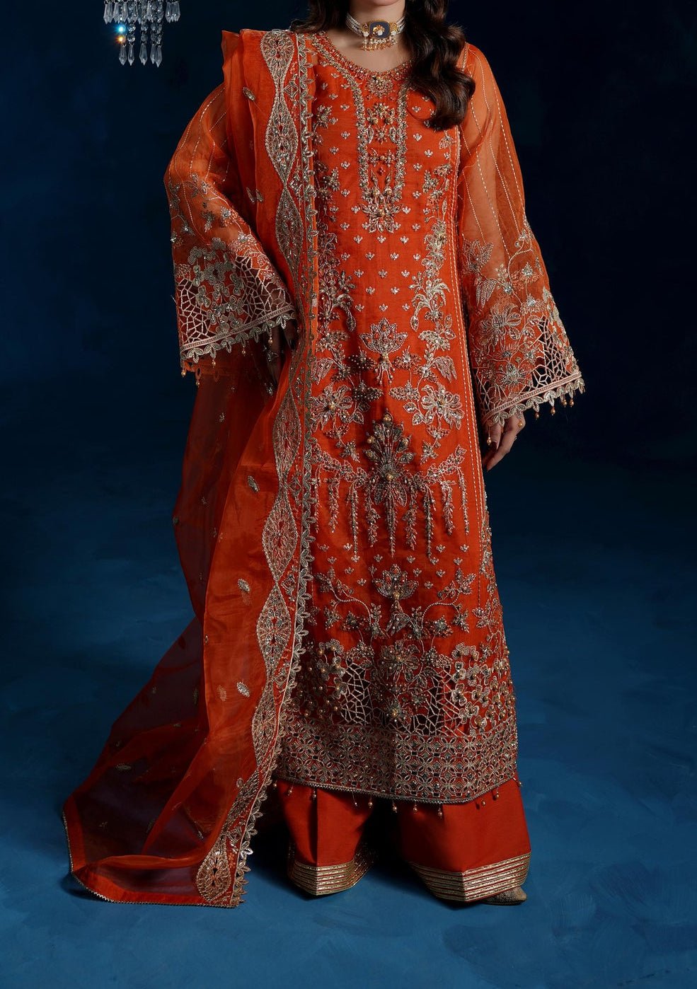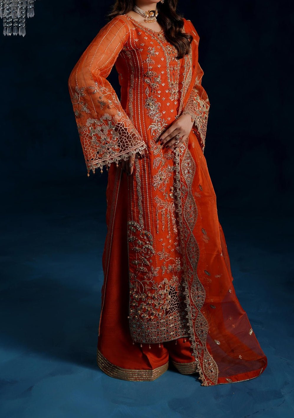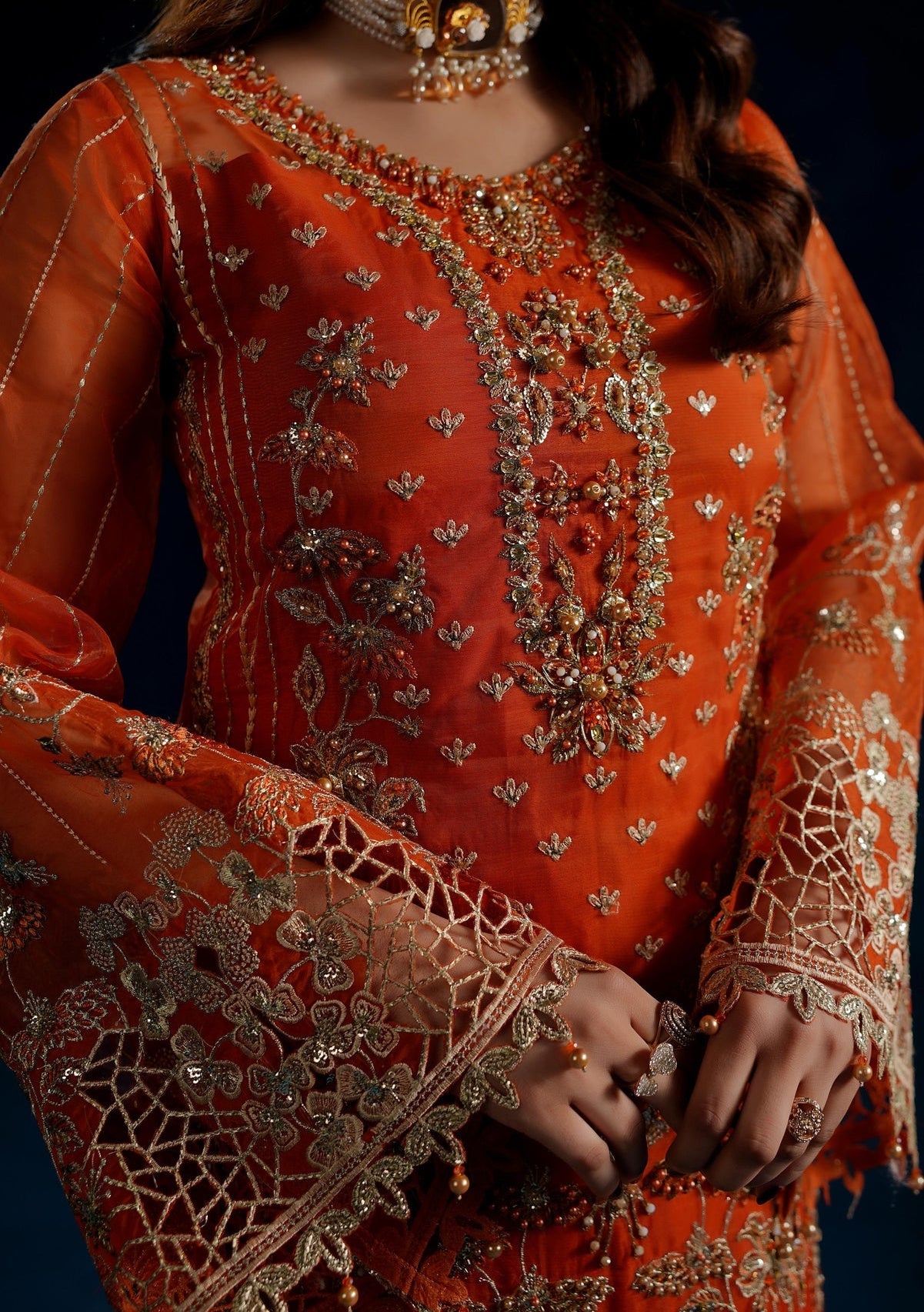 • Embroidered Front, Back, and Sleeves Organza.
