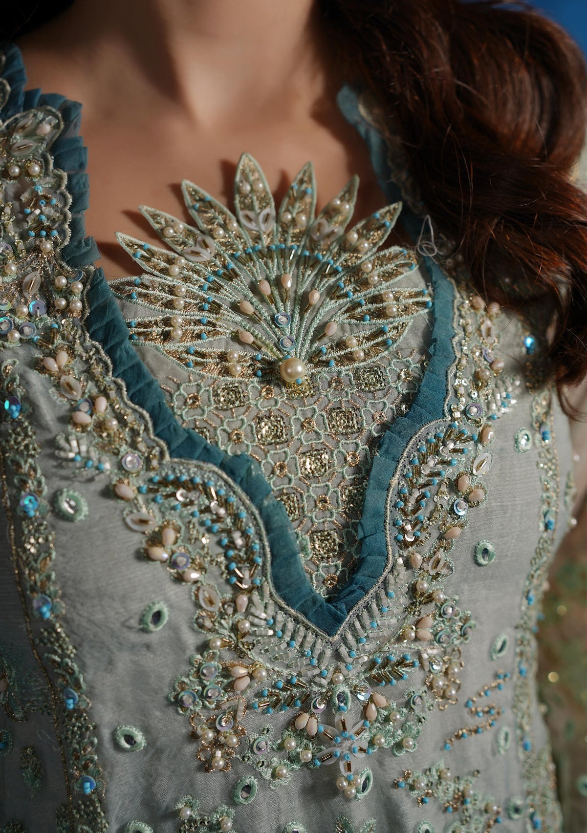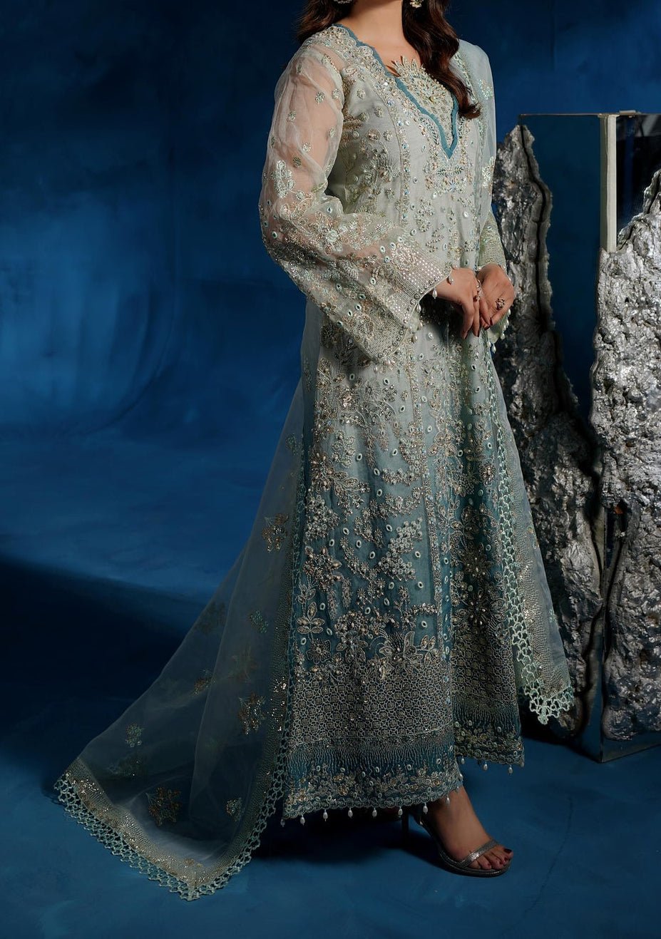 • Embroidered Front, Back, and Sleeves Organza.