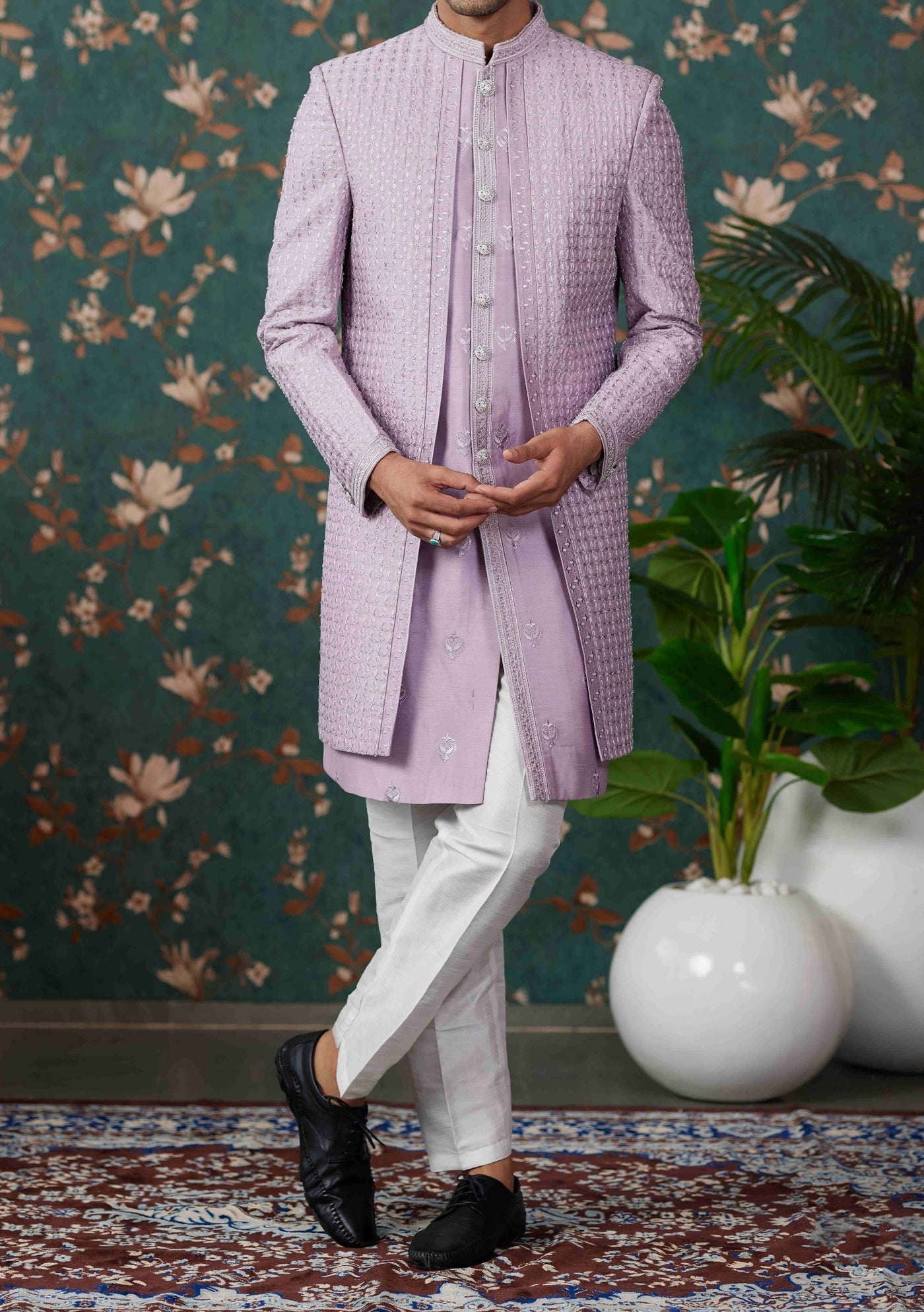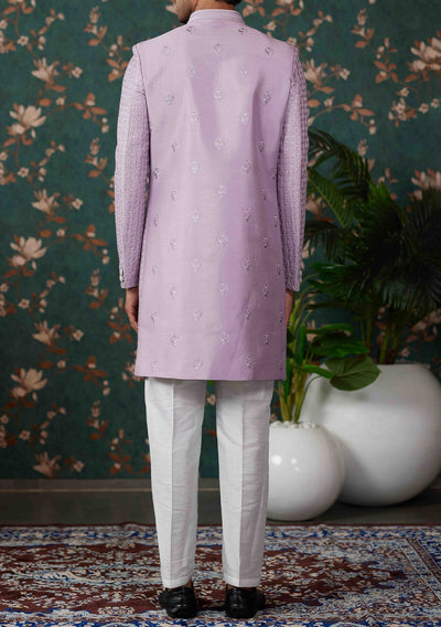 Includes: Ready-Made Top Sherwani and Aligarhi Trouser.