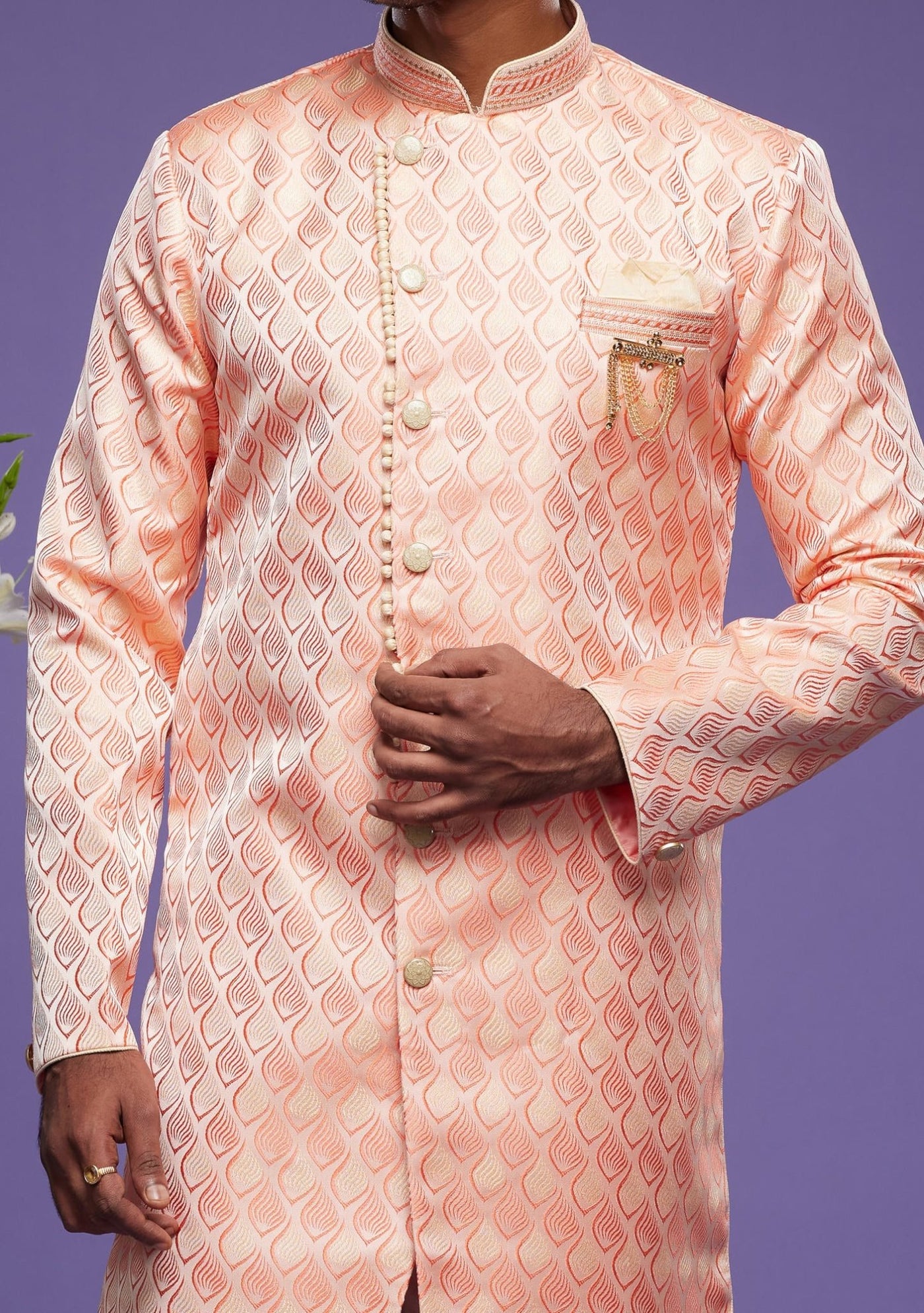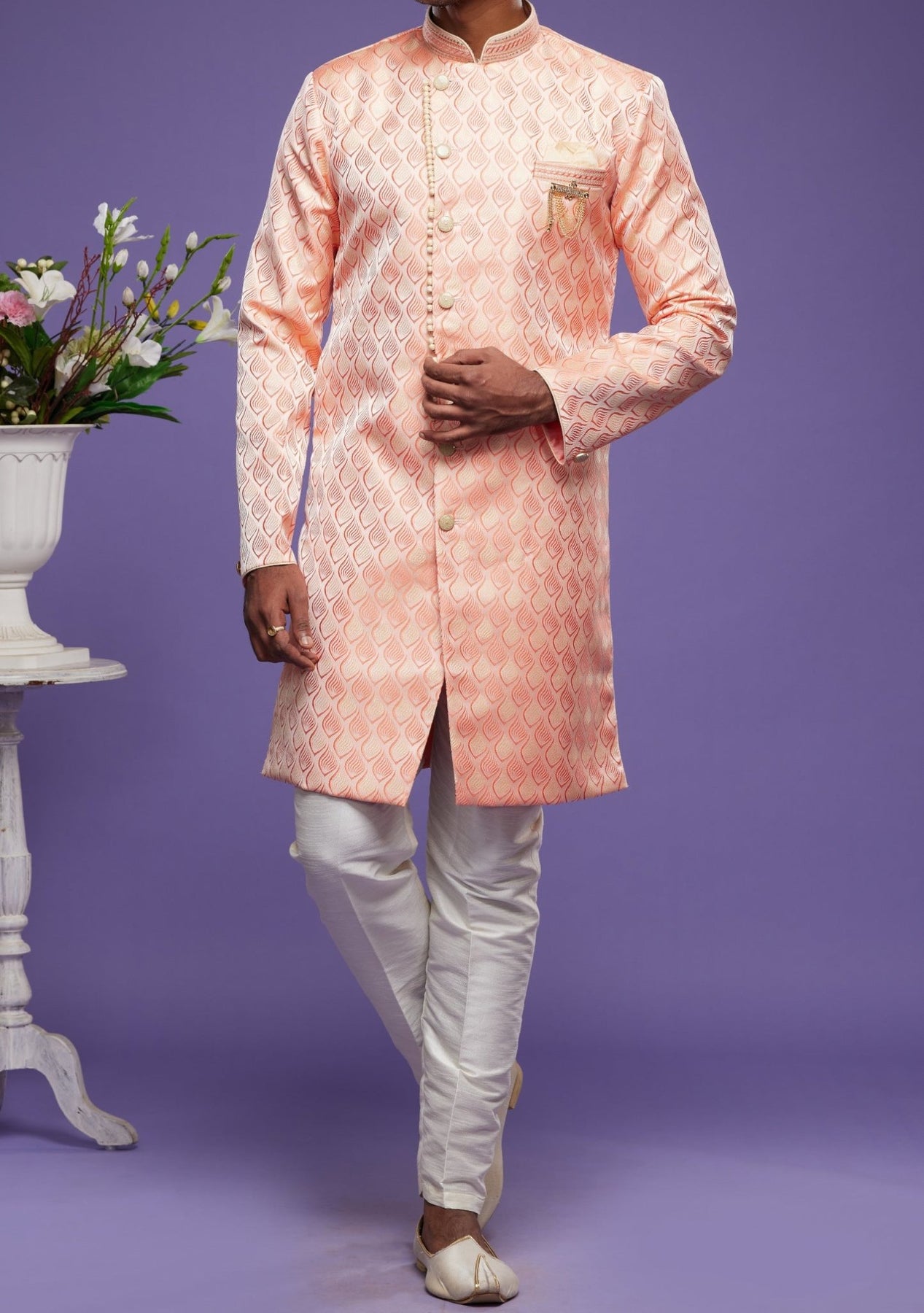 • Ready-Made Sherwani With Aligarhi Trouser.