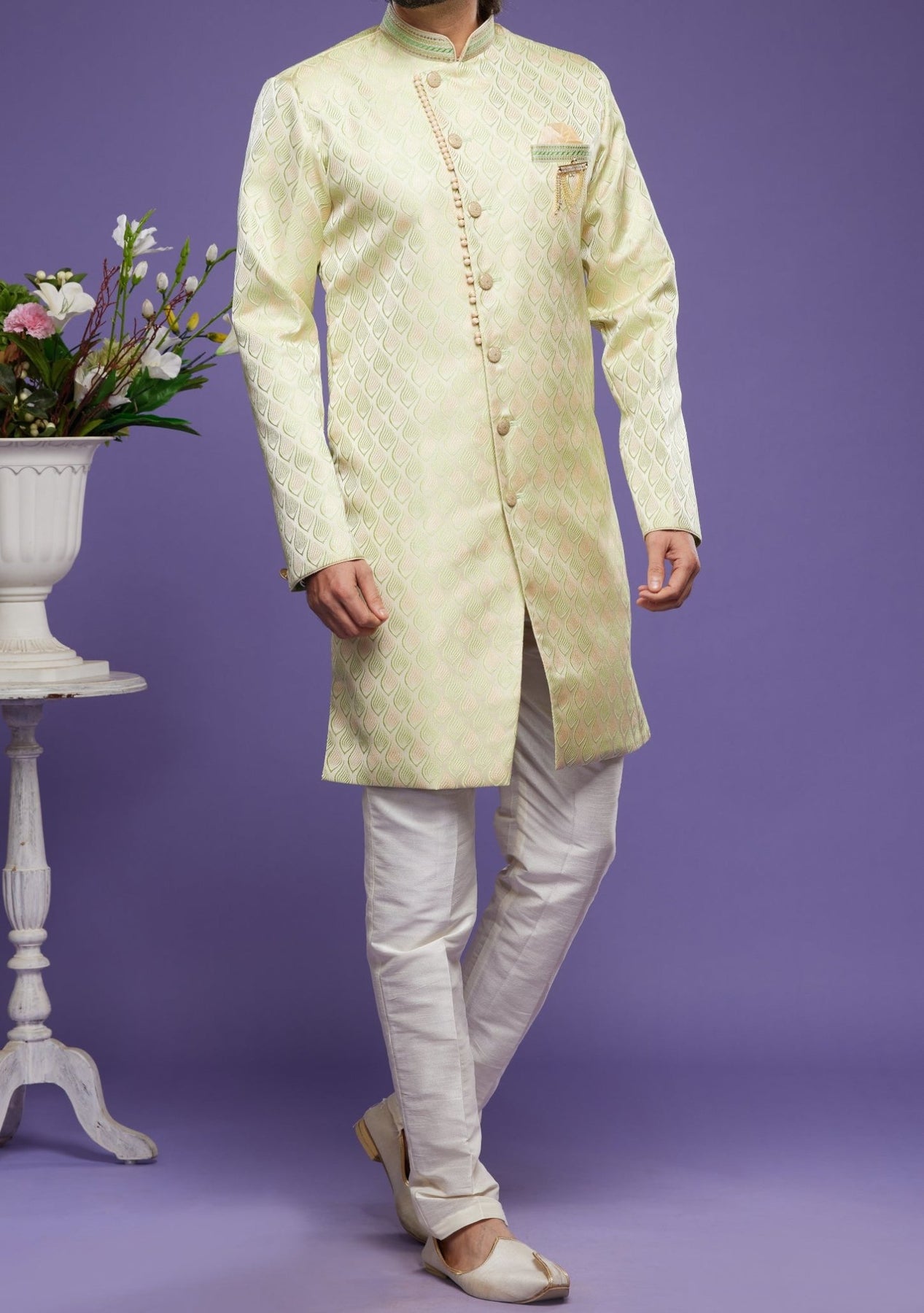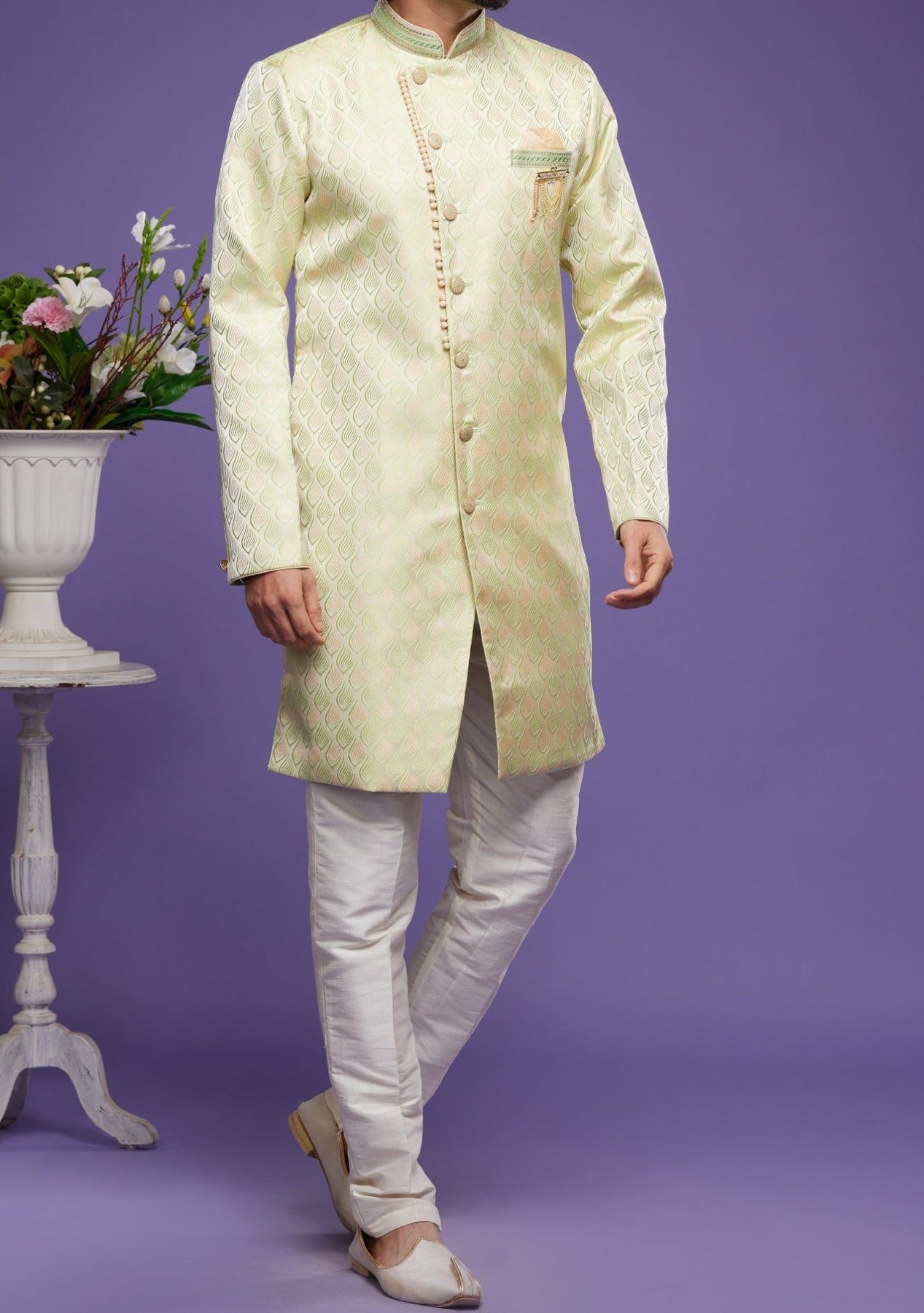• Ready-Made Sherwani With Aligarhi Trouser.
