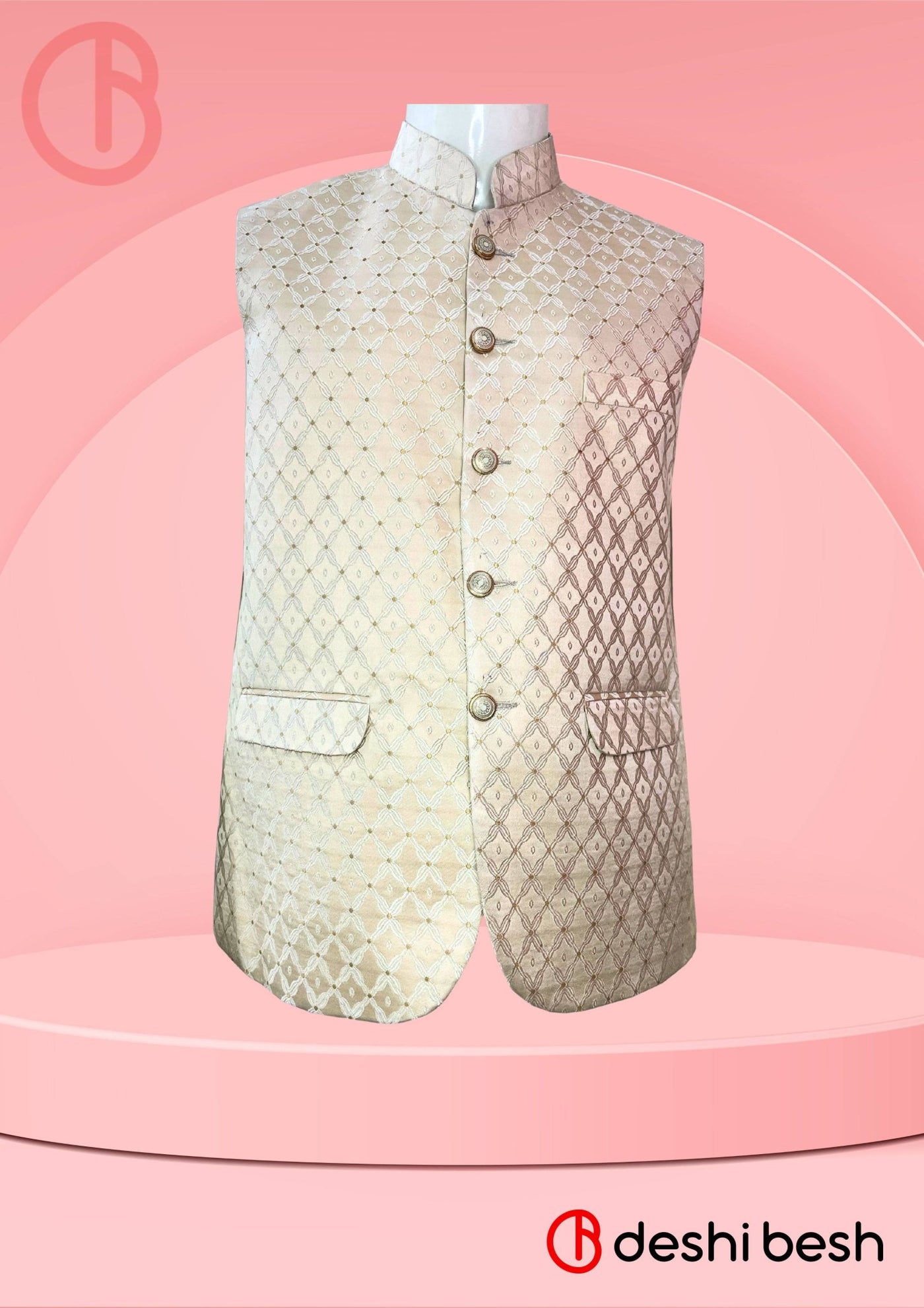 Deshi Besh introduces this exceptional Jacquard men's Waistcoat which will give you a unique look, ideal for wearing outdoors, wedding or eid.