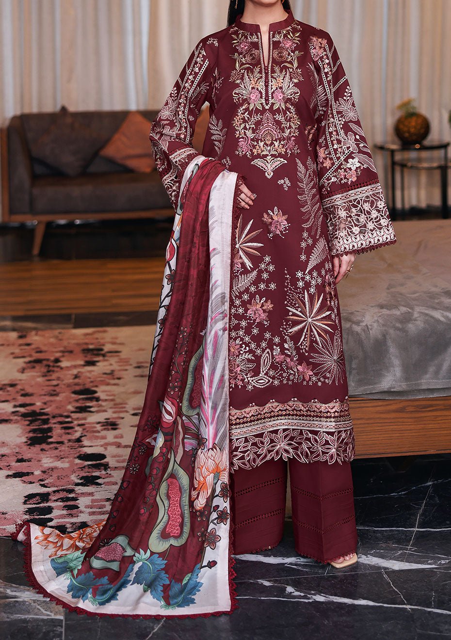 Includes: Kameez, Trouser and Dupatta.