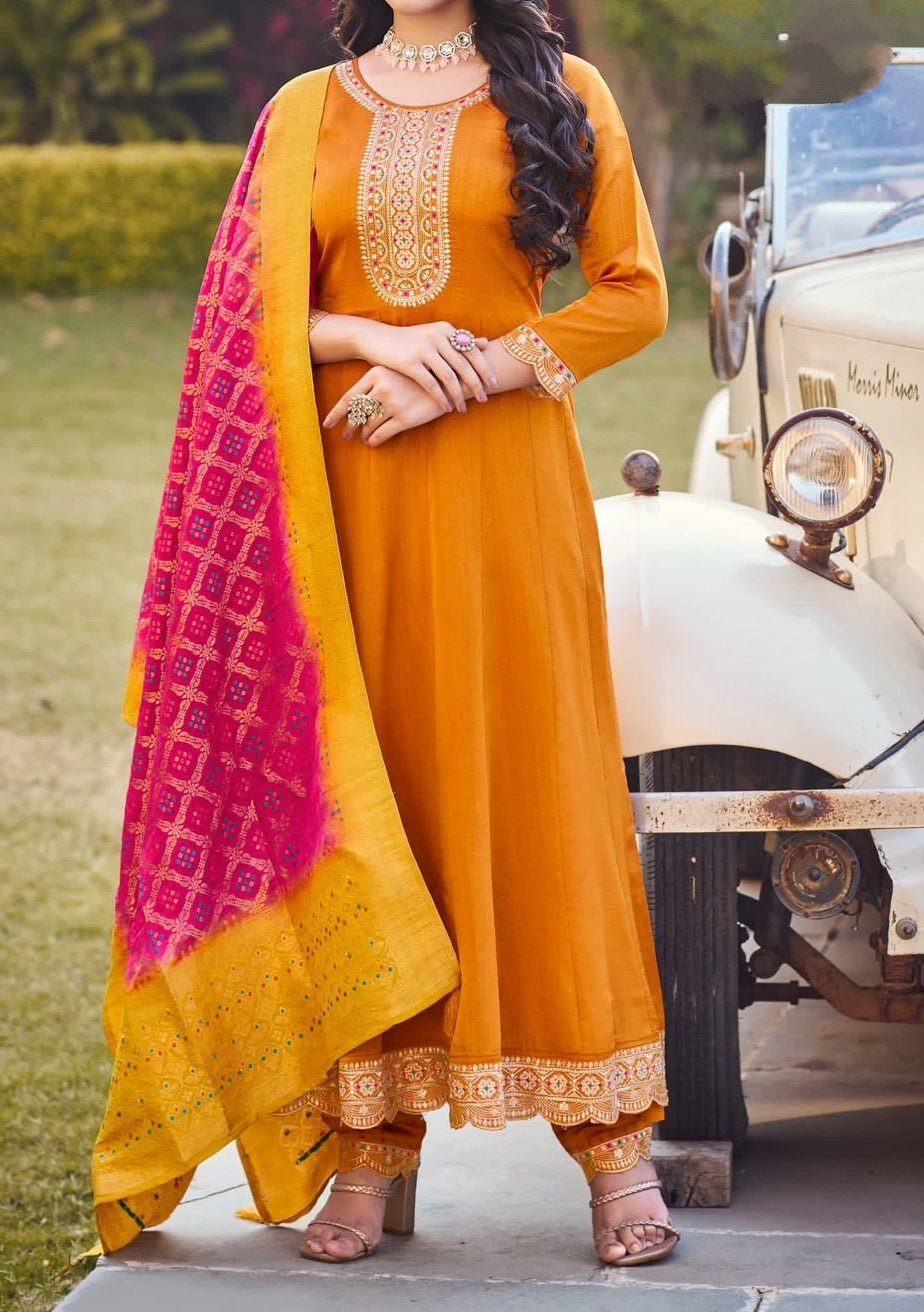 - Silk With Fancy Embroidery Work With Full Inner Anarkali Style.