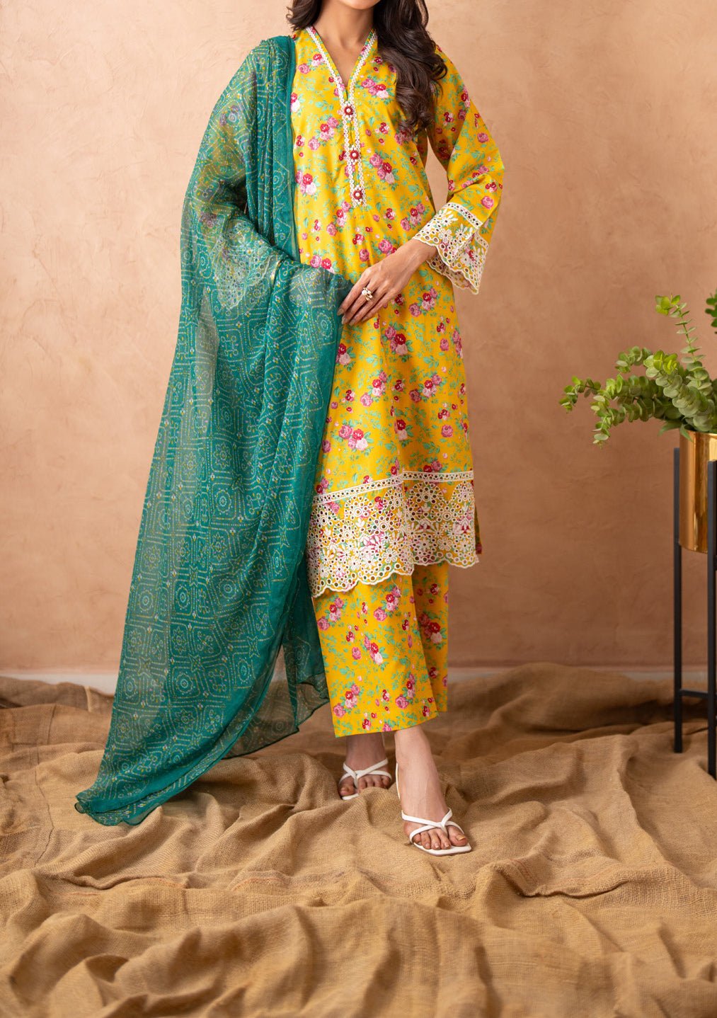 Includes: Ready-Made Kameez, Trouser, Dupatta.