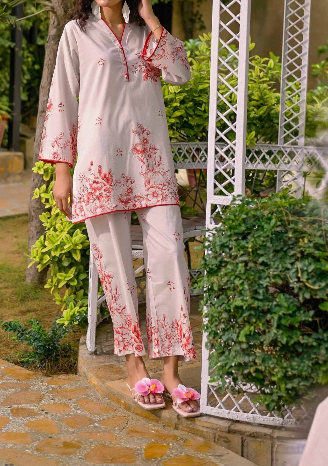 • 2 Pieces, Printed Trouser.