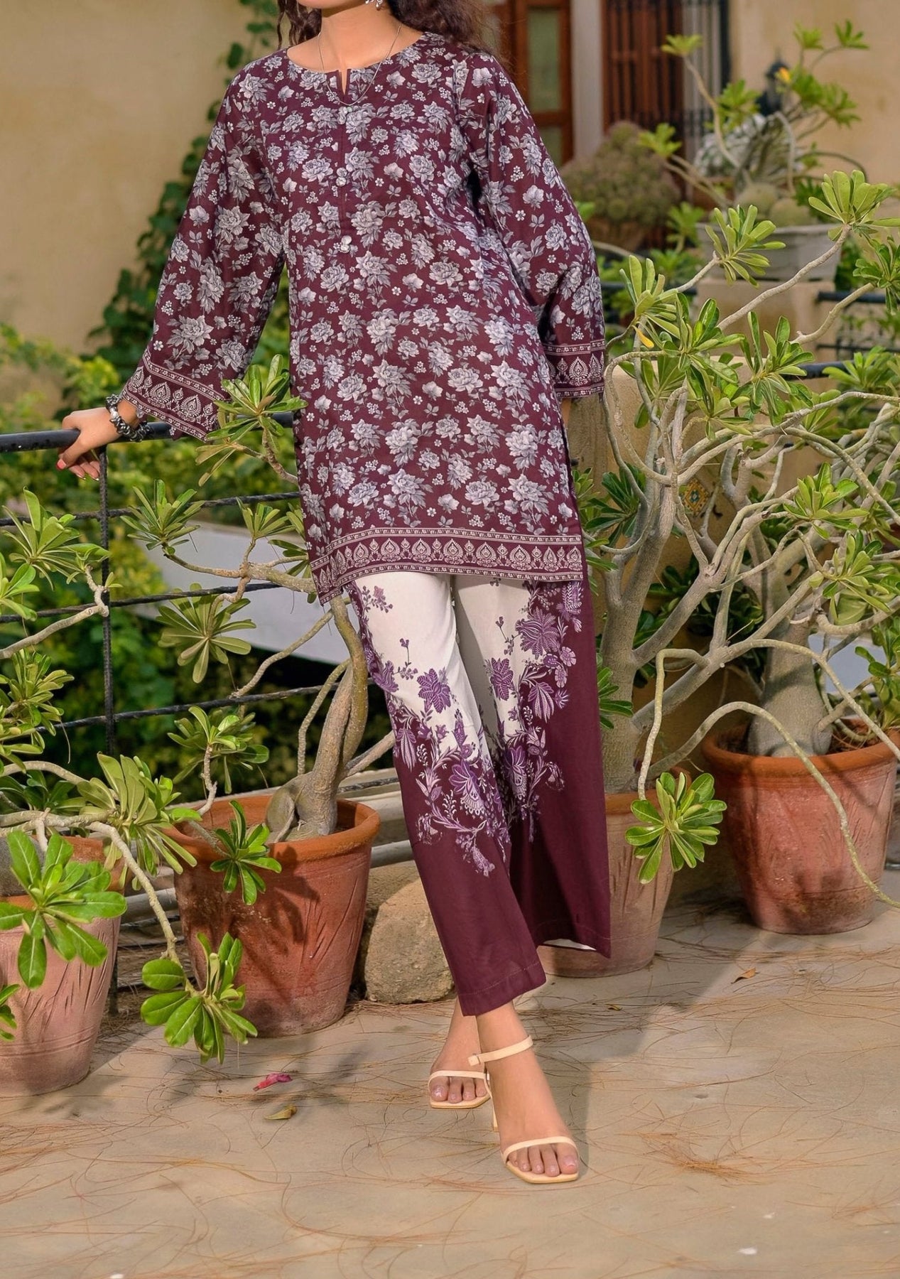 • 2 Pieces, Printed Trouser.